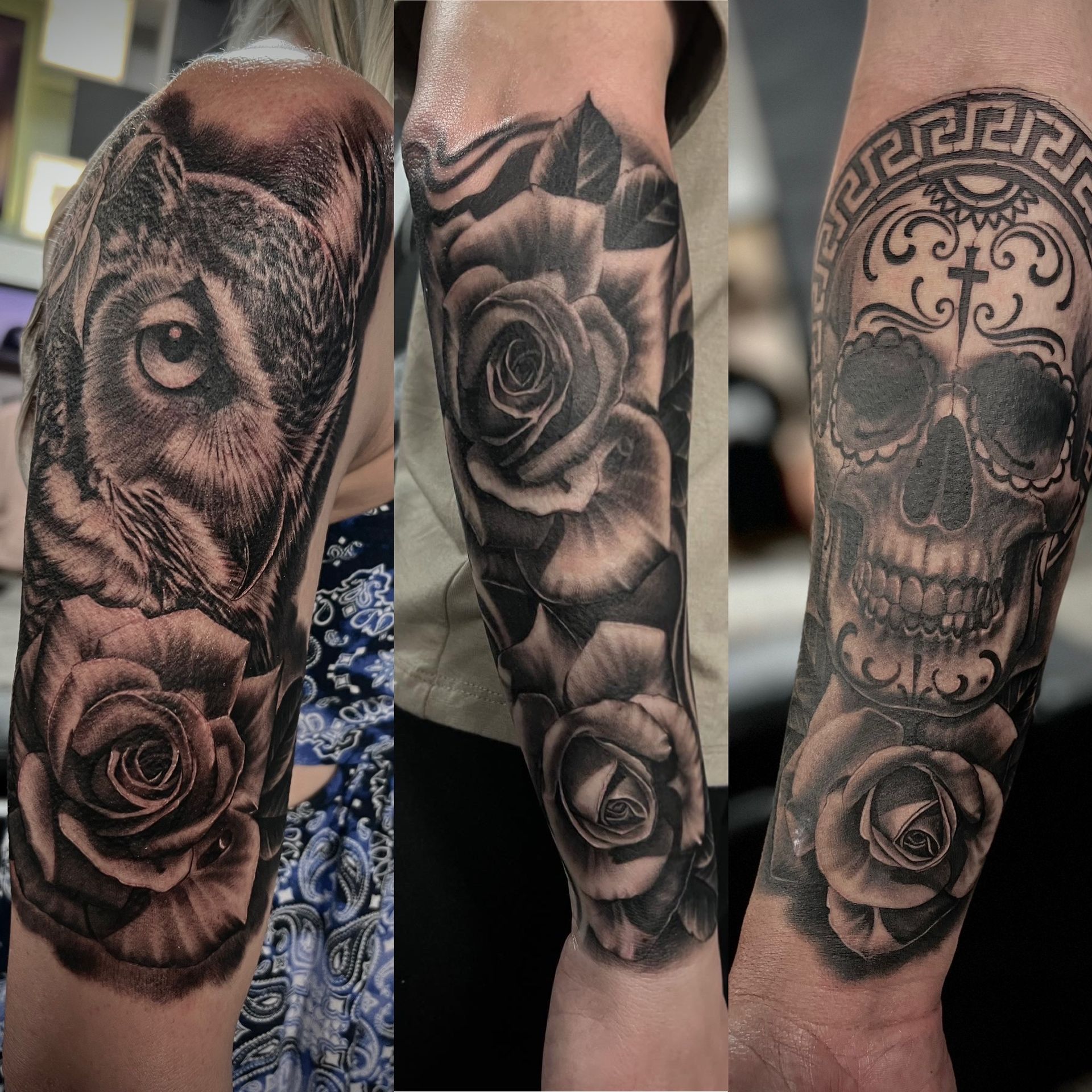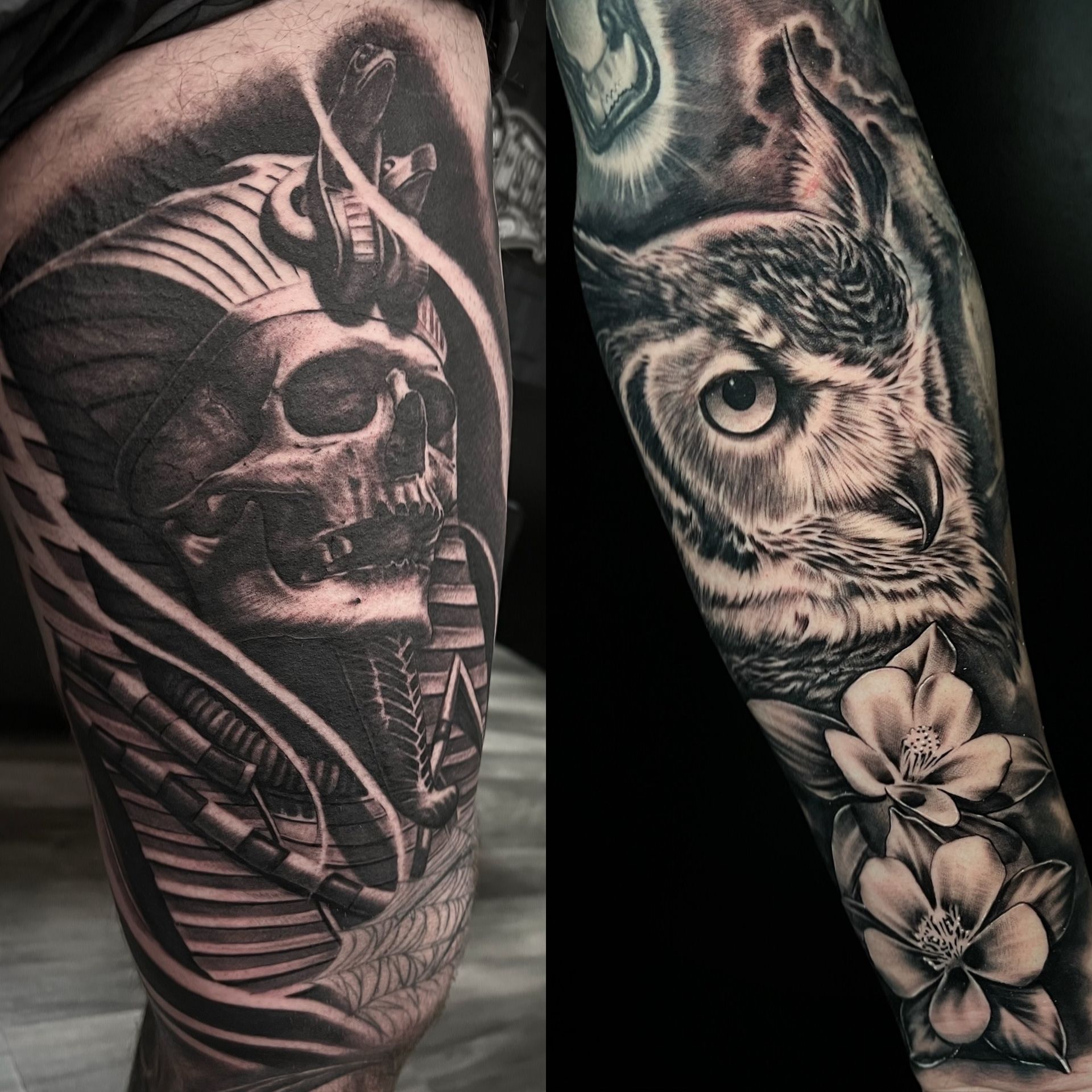 Large scale black and grey tattoos