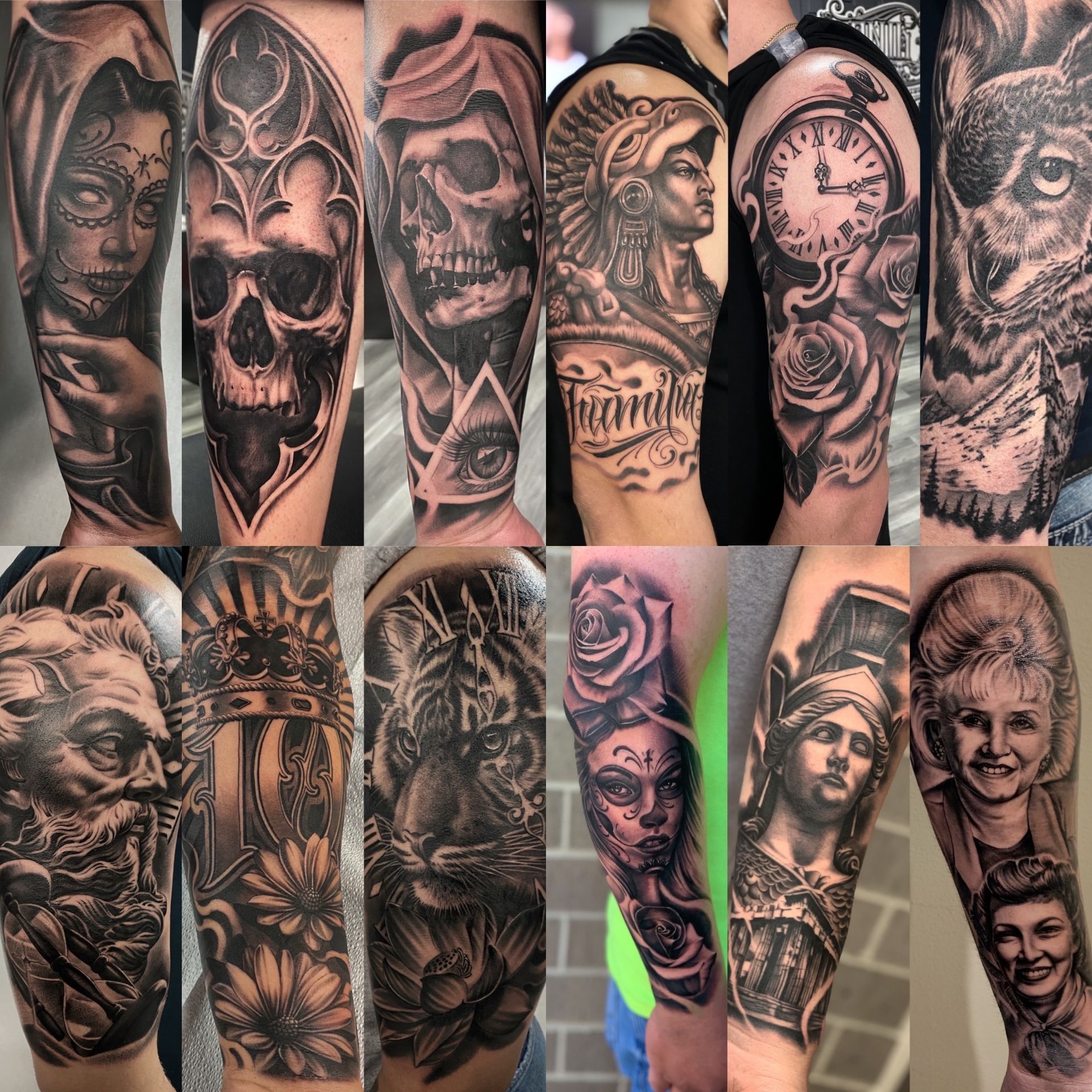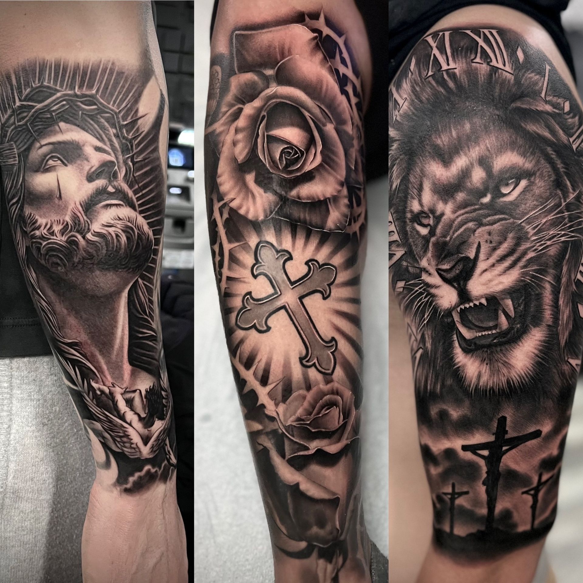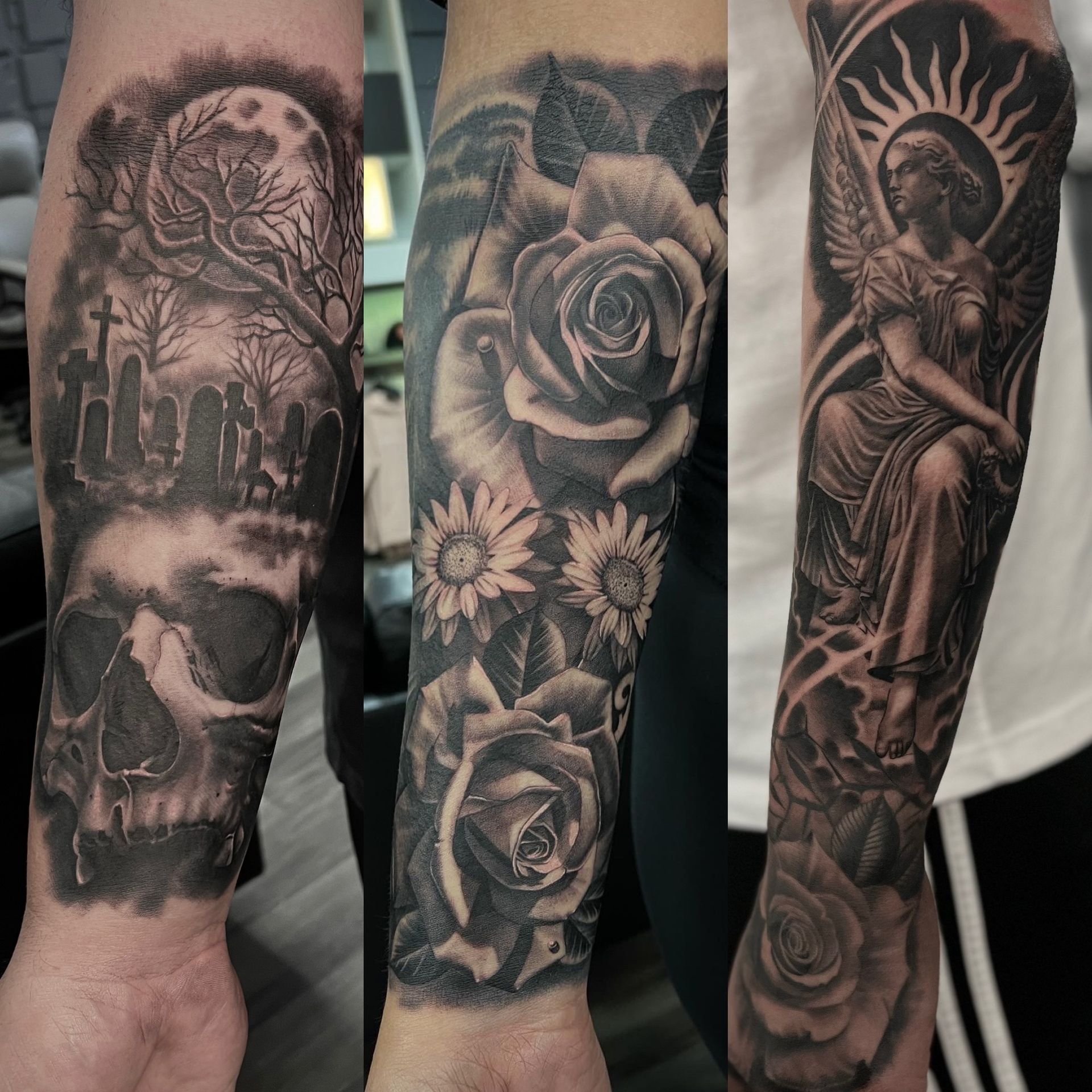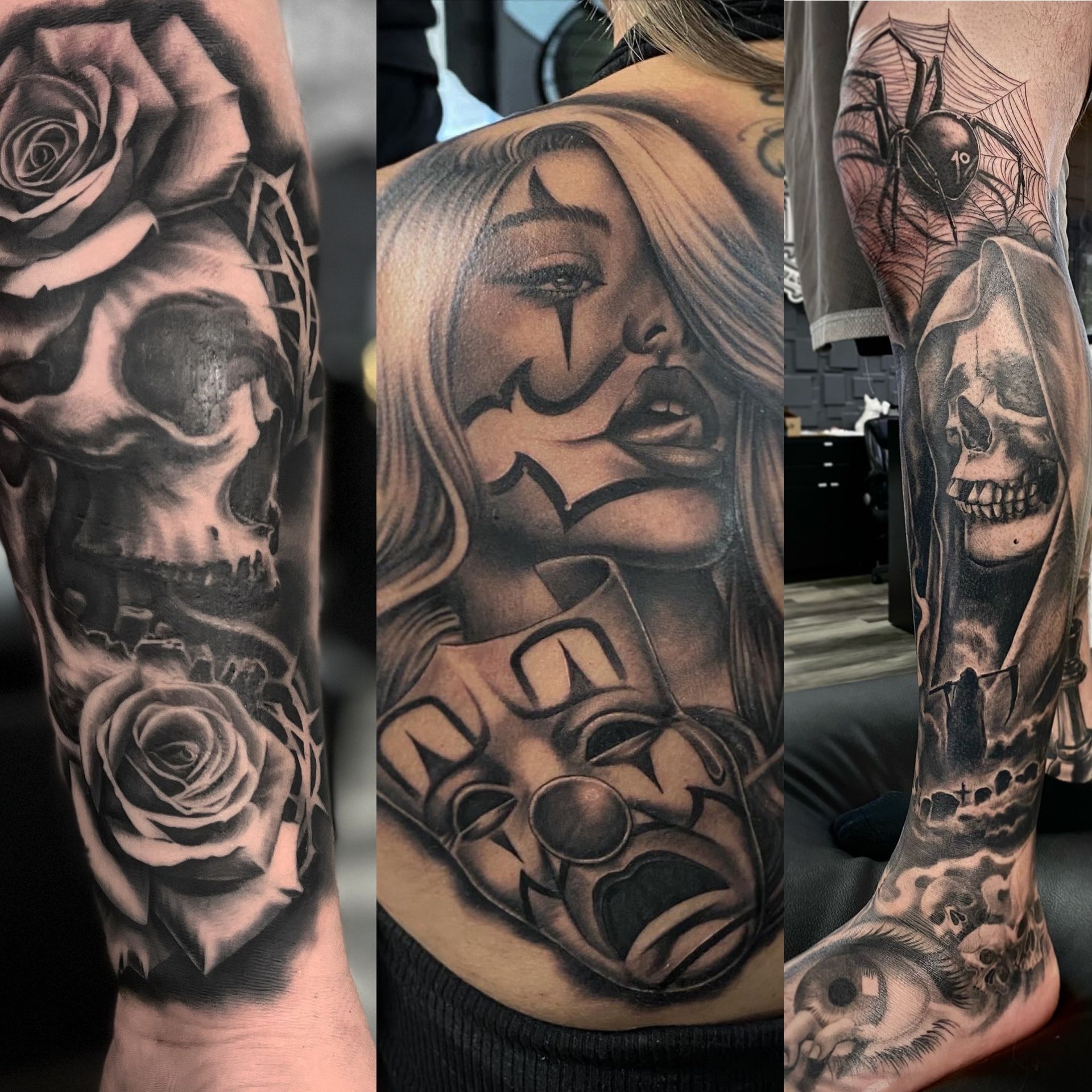 Black and grey realistic tattoos
